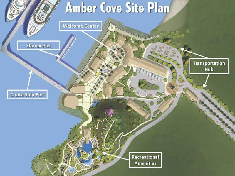 Amber Cove contará con un centro de bienvenida frente al mar con una variedad de ofertas minoristas, incluido un mercado de artesanías y recuerdos dominicanos, así como una amplia gama de establecimientos únicos de alimentos y bebidas. El puerto también incluirá un área recreativa que contará con amenidades como una piscina, zona de chapoteo y áreas de espacios verdes. El centro de transporte, el componente individual más grande del puerto, brindará a los visitantes un fácil acceso por tierra y mar a los destinos y atracciones de los alrededores.